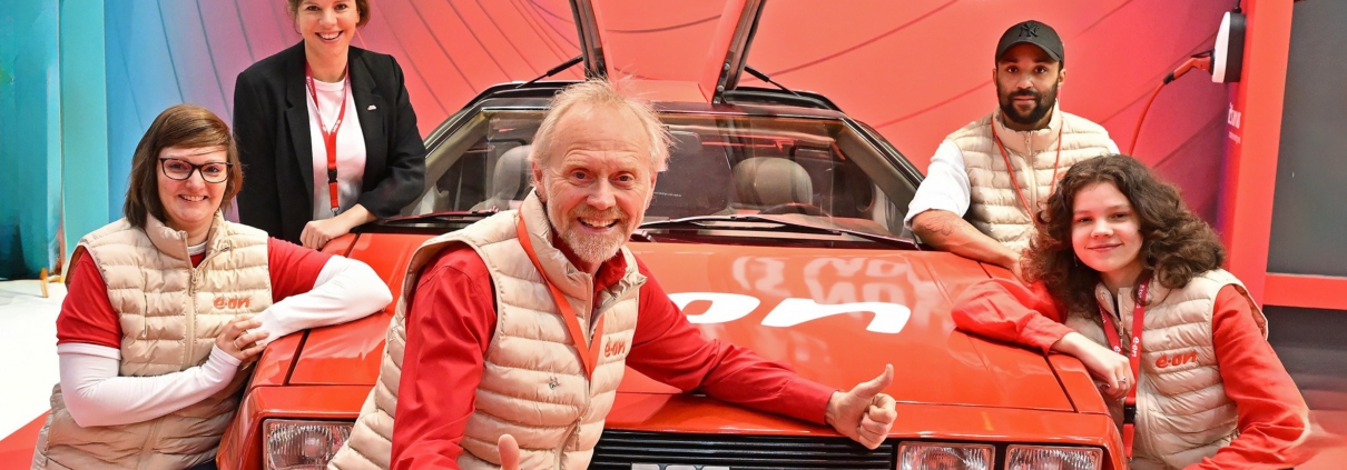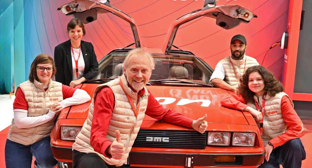 Übrigens: Dieser DeLorean war natürlich passend zu e.on die Elektro-Version. Außen ikonisch im Stil der 80er Jahre und unter der Haube hypermodern, beschleunigt er unter vier Sekunden auf 100 km/h. Man kann ihn so auch am Markt kaufen. Der Preis? Sechsstellig mit einer Zwei vorne.
