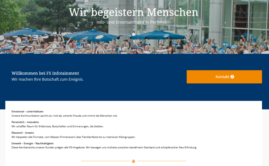 Der Relaunch 2026 führt in eine neue FSI-Web-Erfahrung und war – zugegeben – absolut überfällig. Neben der Homepage laden unsere Schwerpunktbereiche Bildungskommunikation und Events logisch aufgefächert und übersichtlich zum Stöbern ein. Diese Klarheit ist Ihr Nutzwert: Pädagogische Spielangebote, Aktionsformate und alle Lernerlebnisse führen unser Portfolio vor Augen und zeigen jeweils direkt die wichtigsten Eckdaten.